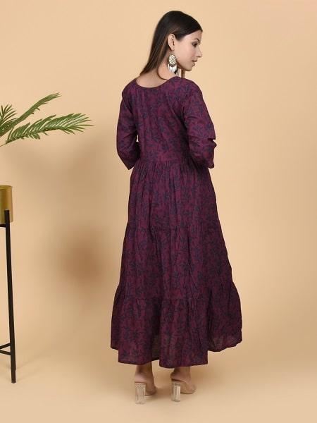 Specially made for Indian Summers, this beautiful Maroon Floral-Print Gown will make you outshine on any occasion